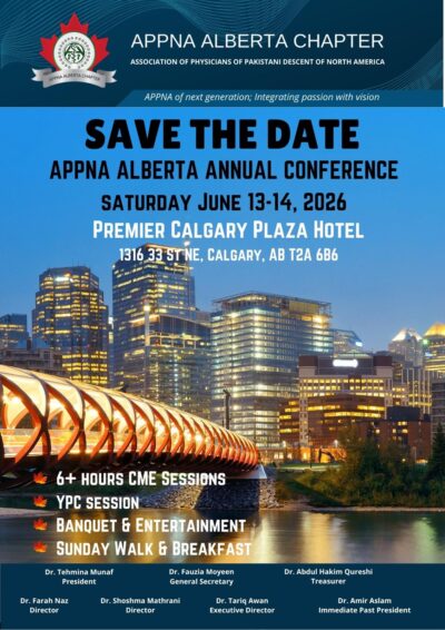 I am grateful to the APPNA Alberta community for entrusting me with the responsibility of serving as President for the 2026–2027 term. Building on my previous leadership roles within APPNA Alberta chapter, I remain deeply committed to service, collaboration, and fostering an inclusive and engaged community.